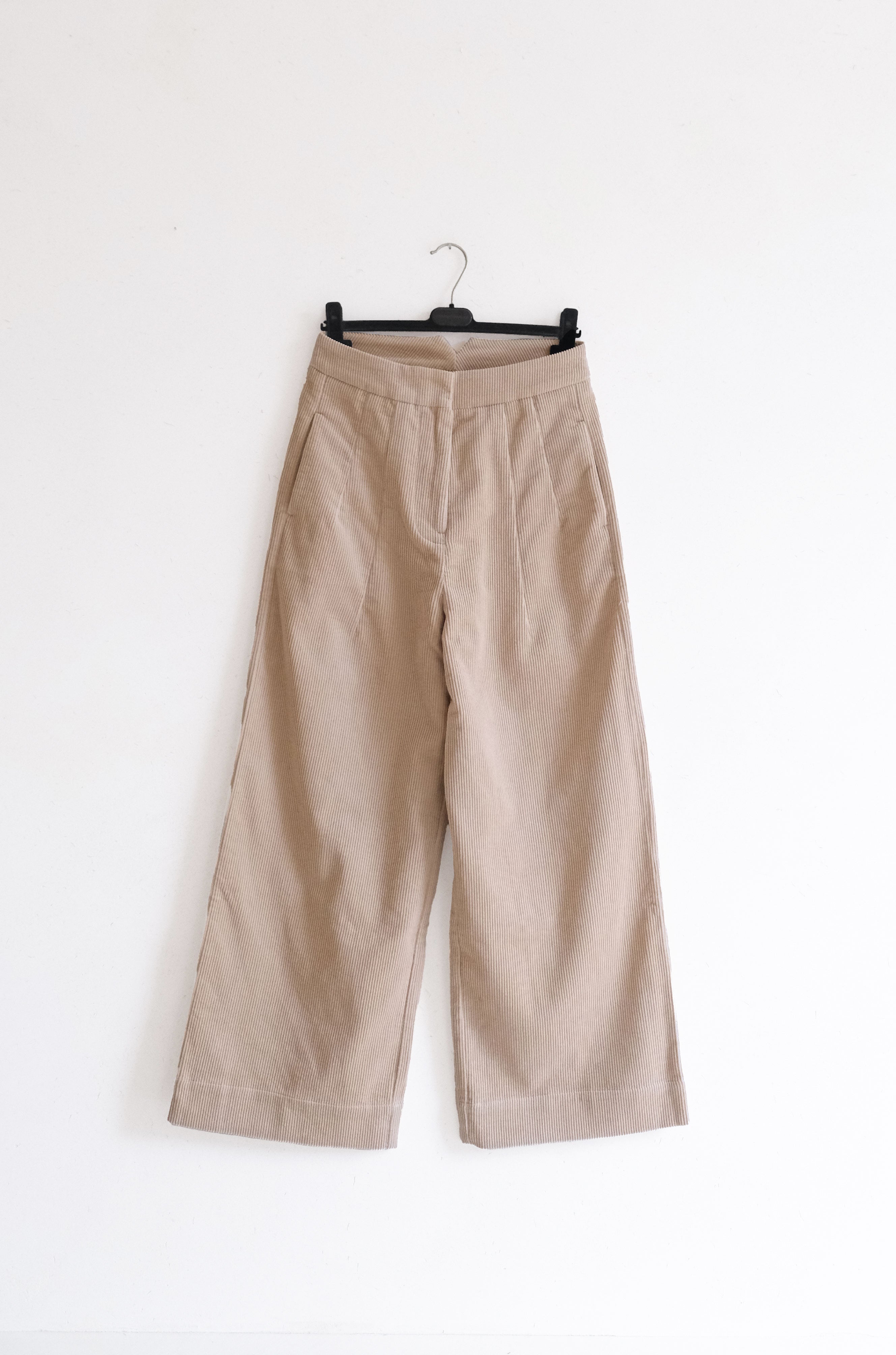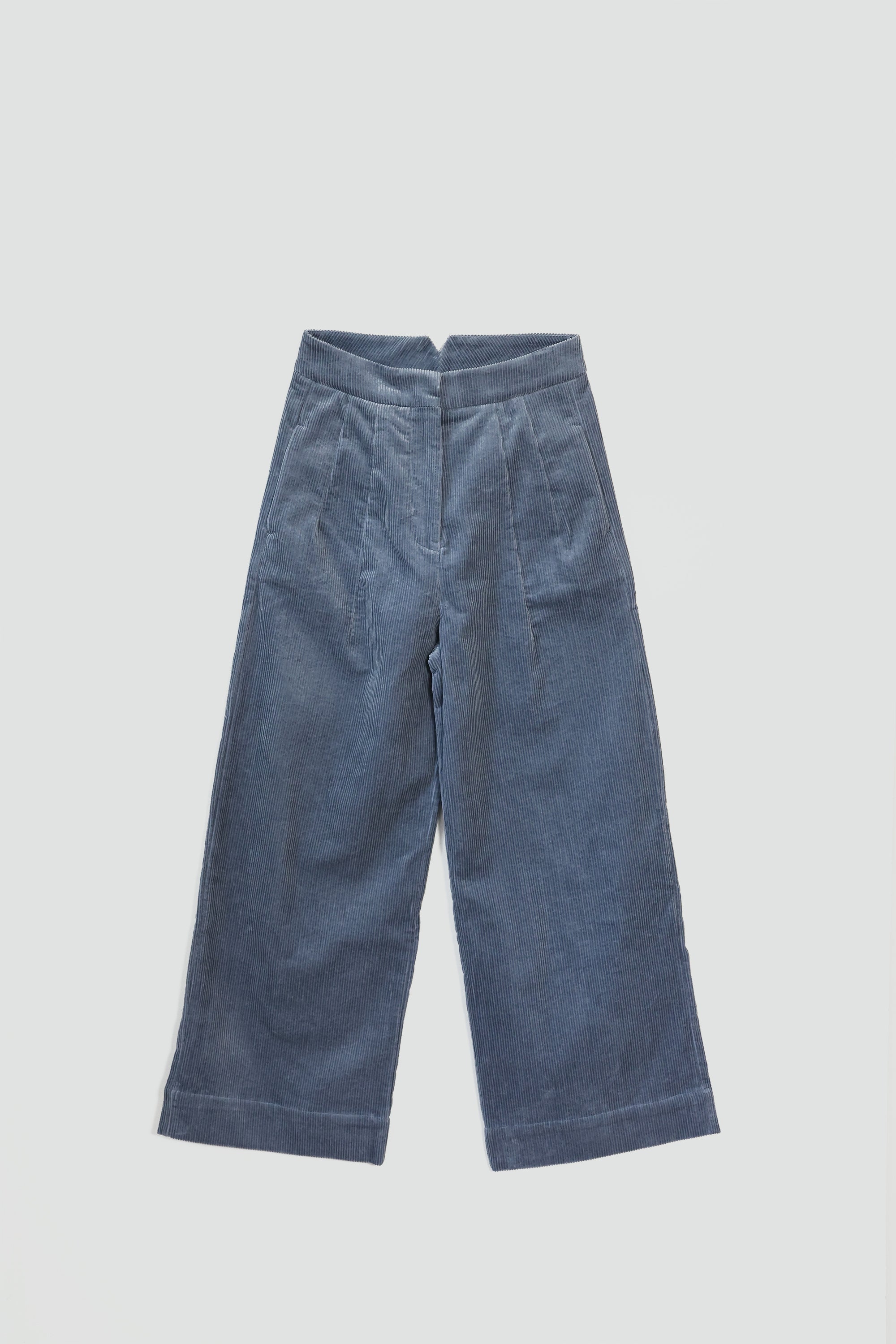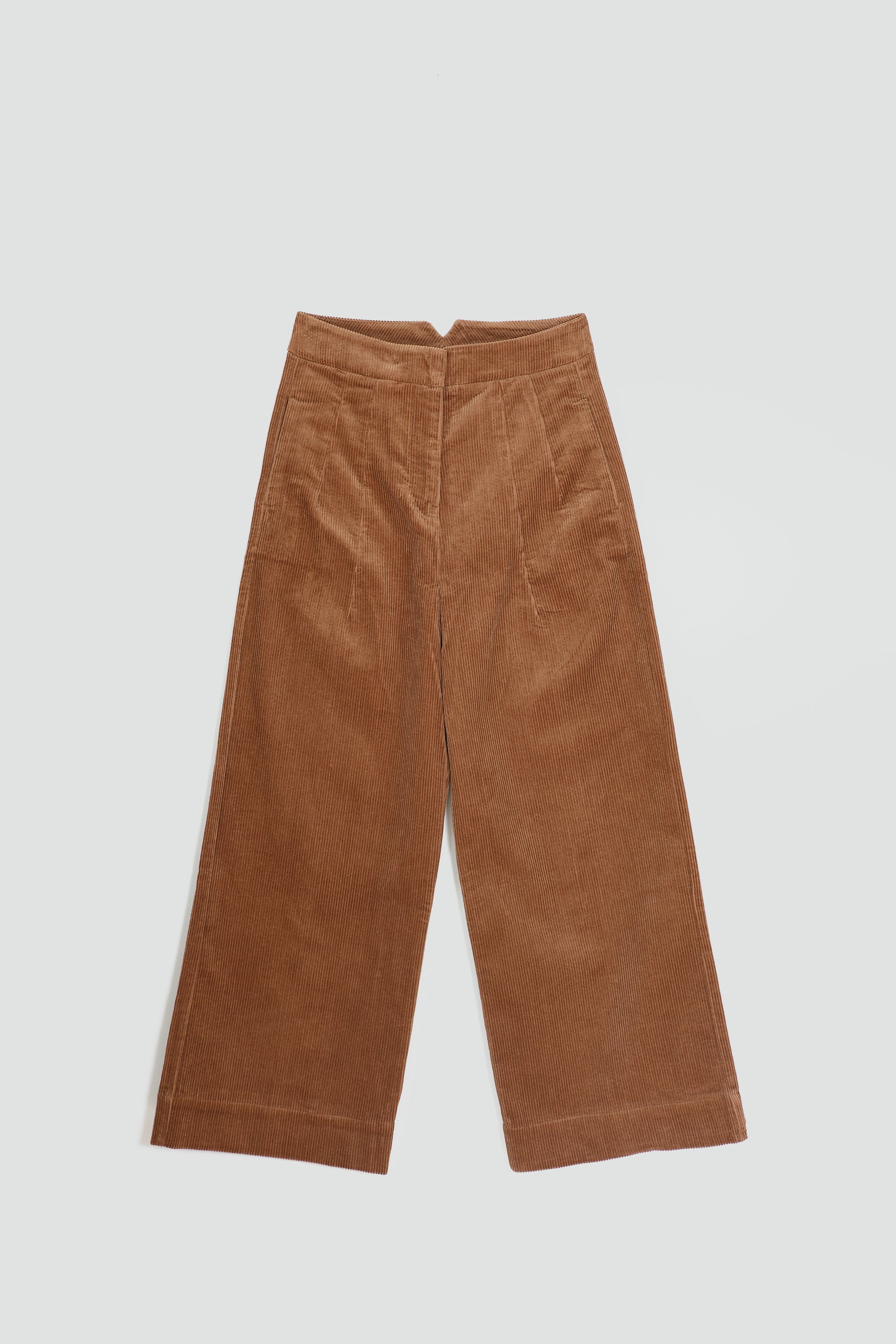 Cordbukser laget i 100% bomull. Buksen er høyt på livet, vie ben, med en bred elastisk linning og eksterne sidelommer. Buksen har en elegant avslappet silhuett.